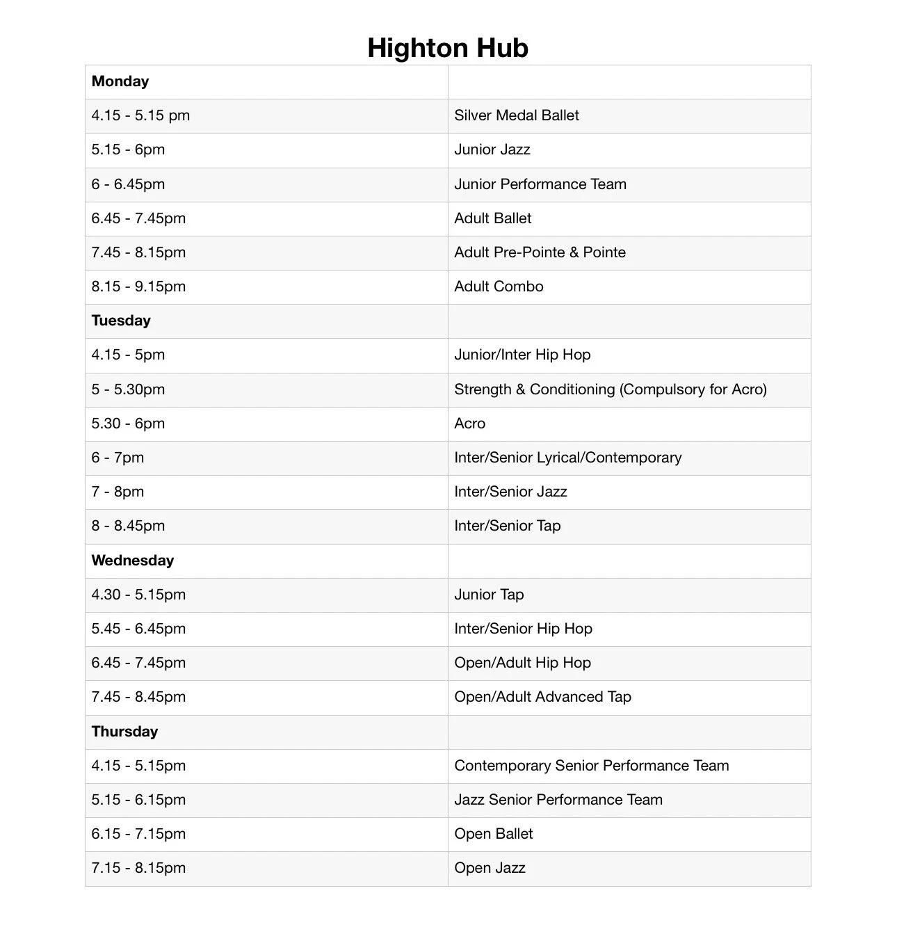 Timetable